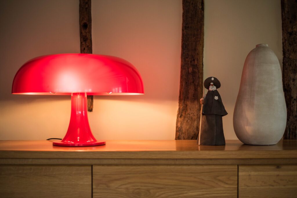 Nesso to futurystyczna lampka stołowa zaprojektowana w latach 60. przez Giancarlo Mattioli wraz z grupą Urban Architects. Lampa ta, wykonana z tworzywa sztucznego, jest przykładem stylu Space Age, który dominował w tamtym okresie. Nesso zdobyła uznanie dzięki swojemu nowatorskiemu designowi i materiałom, które były wtedy nowością w branży oświetleniowej. Lampa ta nie tylko spełnia funkcję praktyczną, ale również stanowi odważne oświadczenie estetyczne, które wciąż inspiruje współczesnych projektantów.