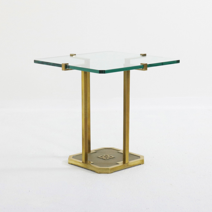 Elegancki stolik boczny (model T18) zaprojektowany przez Petera Ghyczy wyróżnia się oryginalnymi nogami z mosiądzu oraz szklanego blatu ma grubość 15 mm. Ghyczy, węgierski projektant mieszkający w Holandii, znany jest z dbałości o konstrukcję, równowagę, oryginalność i kunszt. Obecnie firmę prowadzi jego syn, kontynuując tradycję tworzenia wysokiej jakości mebli.